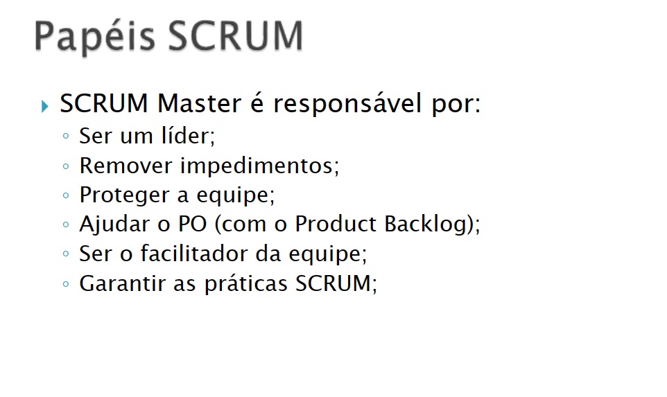 O Scrum Master é um facilitador e líder de equipe. Eles ajudam a equipe a entender e adotar as práticas do Scrum, removem impedimentos que podem atrapalhar o progresso e garantem que o processo Scrum esteja sendo seguido adequadamente. O Scrum Master não é um gerente tradicional, mas sim um coach para a equipe.