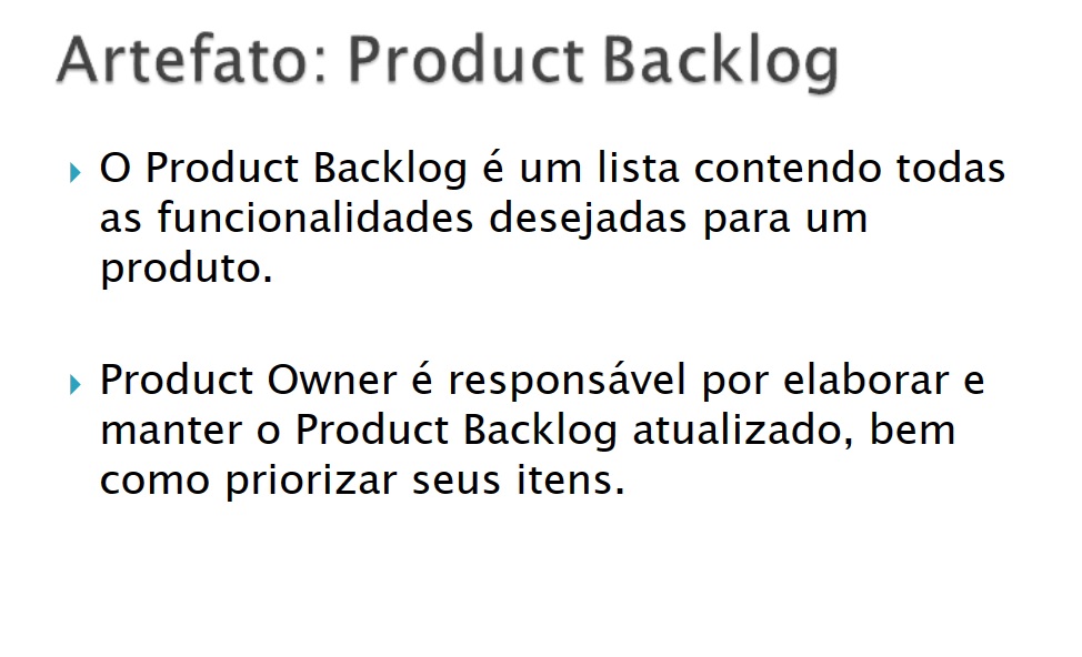 O backlog do produto é uma lista priorizada de todas as funcionalidades, melhorias e requisitos que compõem o produto. Ele é mantido pelo Product Owner e evolui à medida que novas informações são obtidas e prioridades são ajustadas. Os itens do backlog do produto são descritos em termos de histórias de usuário ou requisitos.